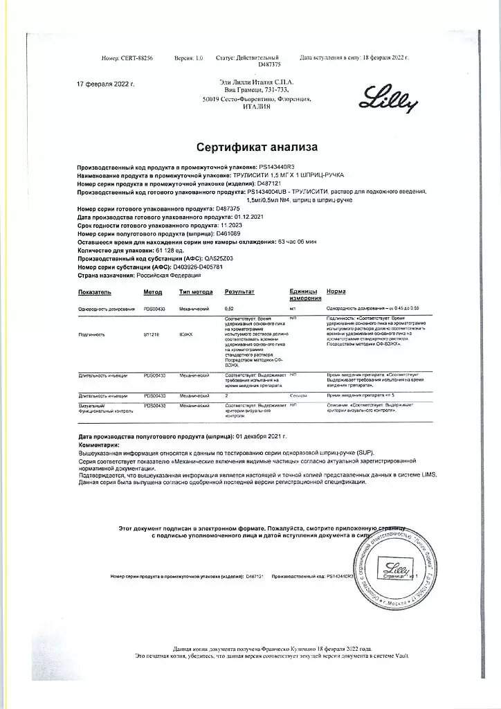 Форма выпуска, упаковка и состав препарата Трулисити®