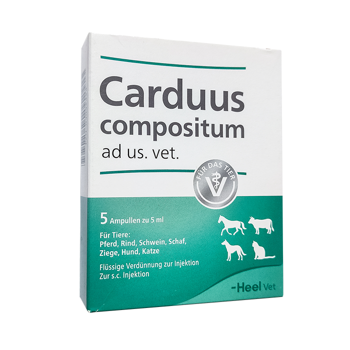 Кардус композитум - гомеопатический комплексный ветеринарный препарат, в состав которого входят компоненты в гомеопатических разведениях Dl, D2, D3, D5. С помощью гомеопатических разведений компонентов препарата осуществляется терапия, в ходе которой активизируются иммунные силы организма, и усиливается выведение адсорбированных в организме токсинов через естественные пути экскреции. Компоненты, входящие в состав препарата в сверхмалых дозах, в организме животного не накапливаются, токсическим эффектом не обладают.