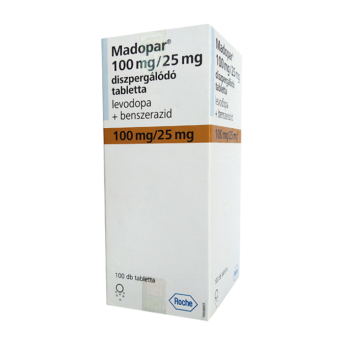 Мадопар® представляет собой комбинацию этих веществ в соотношении 4:1, которая является оптимальной и обладает такой же эффективностью, как леводопа в высоких дозах.