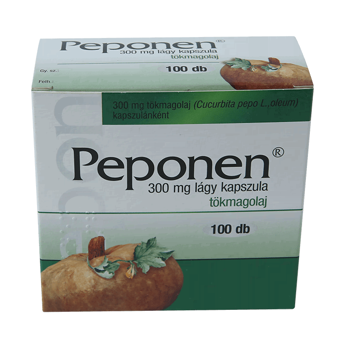 Препарат Пепонен предназначен для симптоматического лечения заболеваний предстательной железы и органов кровообращения. Действующие вещества – масло тыквенных семян, глицерин, желатин, очищенная вода, сорбитол. Тыквенное масло – ценный ингредиент, содержащий большое количество производных полиненасыщенных жирных кислот.