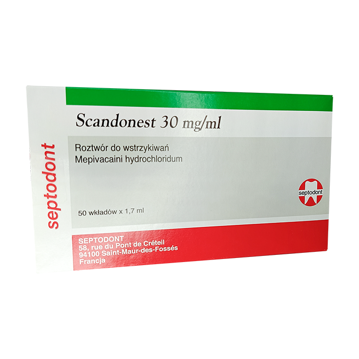 Скандонест – это местноанестезирующий препарат быстрого действия, содержащий активный компонент админного типа – Мепивакаина гидрохлорид, который Scandonest оказывает слабовыраженное сосудосуживающее влияние в месте введения, что позволяет использовать меньшее количество вазоконстрикторов. Вызывает все виды местной анестезии: терминальную, инфильтрационную, проводниковую. Оказывает быстрое и сильное действие.