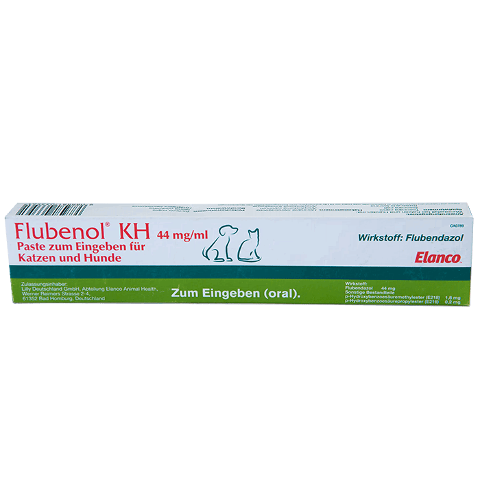 Применение. Препарат выпускается в форме пасты, которую выдавливают животному на язык. Инструкция к Флубенолу определяет дозировку в 1 мл препарата на 2 кг массы тела животного. Пасту применяют один раз в день, курс лечения – три дня. Обычно ветеринар рекомендует на время лечения исключить из рациона животного некоторые продукты.