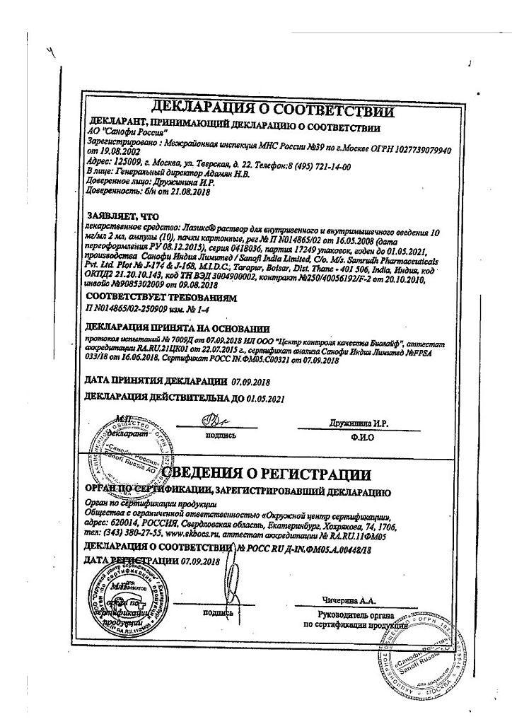 Лазикс® 20 мг не должен смешиваться в одном шприце с другими лекарственными средствами.