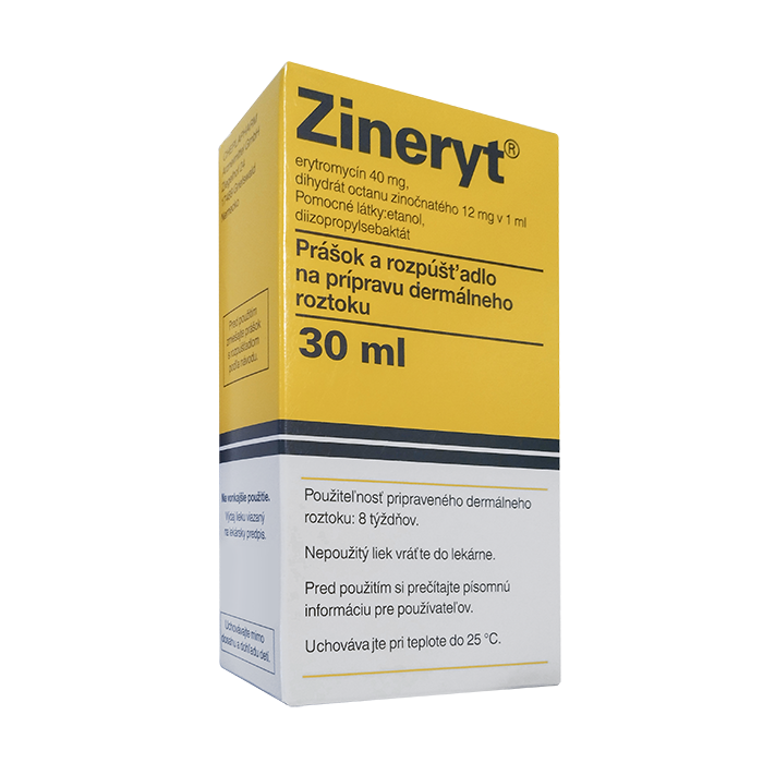 Зинерит – противомикробный препарат, применяемый для устранения угревой сыпи. В этом препарате антибиотик эритромицин сочетается с цинком. Эритромицин убивает воспалительные бактерии в прыщах и, таким образом, может излечить прыщи. Цинк подсушивает кожу и обладает легким антибактериальным эффектом. Он предназначен для содействия заживлению папул и пустул.
